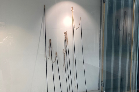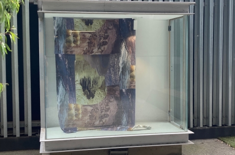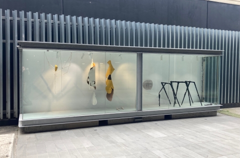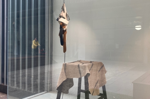 The vitrines feature sculptural and textile works that present as an ongoing psychogeographic inquiry into junctions and schisms between architectural features, memories and bodily experiences within these sites.