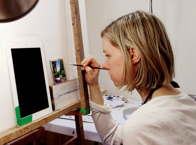 Natasha Bieniek’s paintings draw on notions of the past and present, linking the ancient tradition of 16th century miniature painting with present-day image culture.