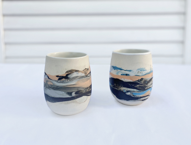 Your teacher will demonstrate making a unique texture pattern or marble effect and then help everyone with their mugs individually. You can also choose to make an unusual mug shape. As shown in the photos on the website, all mugs made by the author, options are numerous