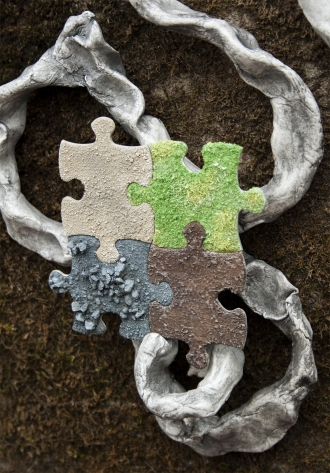 Air drying clay, paint, puzzle pieces, sand, putty, sawdust