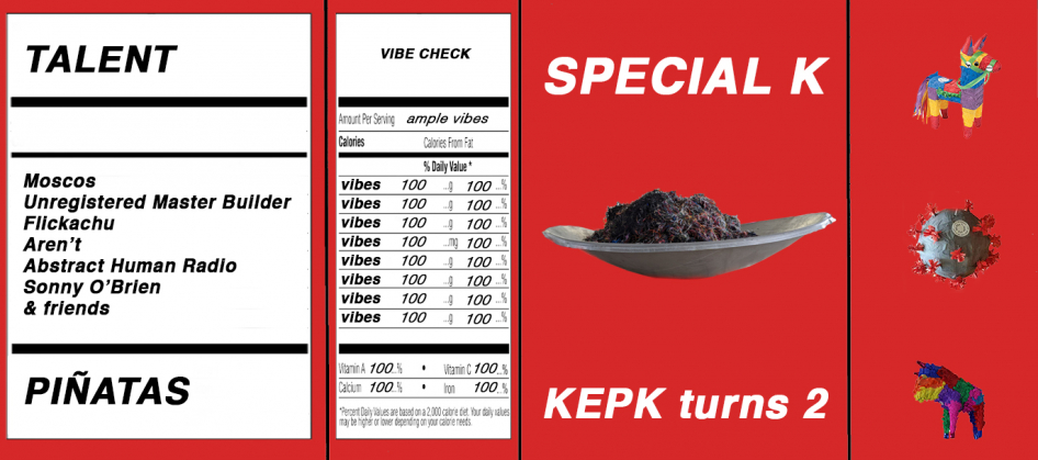 KEPK is turning two on March 12th and it's time to KEPK yourself before you wreck yourself ? To celebrate we are putting on a gig with piñatas (plural). ¡Muy Bueno! ?