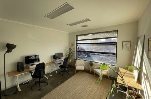 This 18m2 studio in our creative hub is available for your next venture. This studio is a private room which would suit an artist or a person that needs a small office. It receives natural light through sky lights and is temperature controlled. We have extensive communal areas, out-door hangs including work benches and lounge area; veggie patch; Kitchen facilities and a Bakery on site. We house creatives from a wide variety of skillsets, which creates the perfect ground for collaboration and cross pollination.
