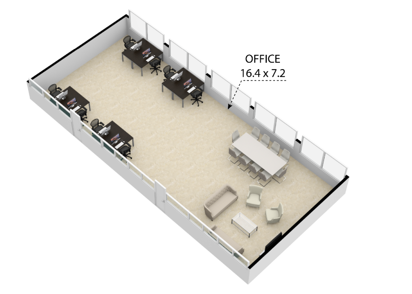 - 60sqm shared with other creative professionals (2 people), in a relaxed, collaborative atmosphere.