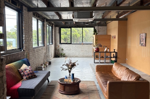 Beautiful big high ceiling warehouse in Rockdale, home to Designers, Artists and Makers. Private walled off private studios with access to large common shared spaces.