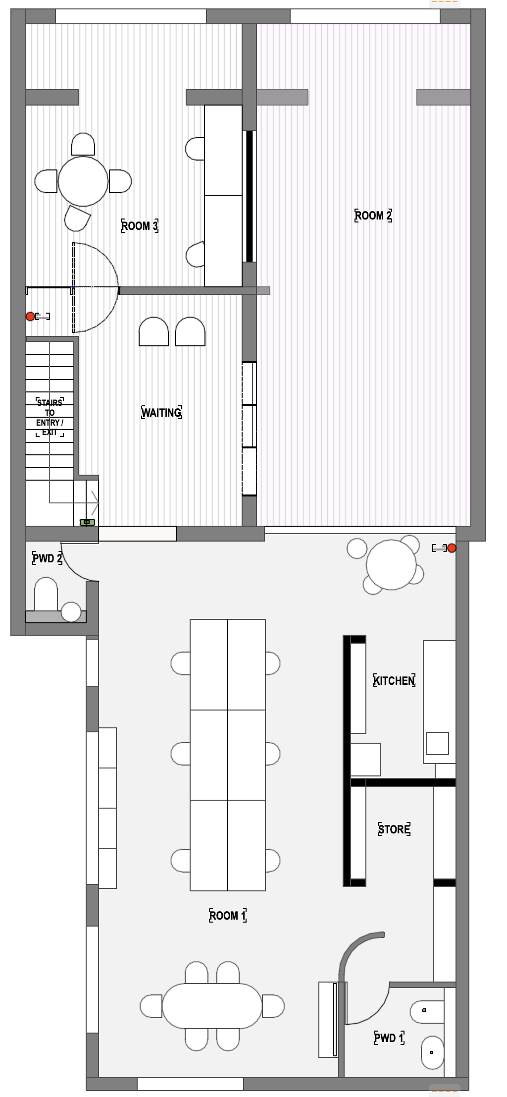 A first floor studio space recently renovated, with plenty of natural light, high ceilings and polished timber floors. Room 2 is a seperate lockable 42m2 room suitable for a range of office uses. A great space to work in.