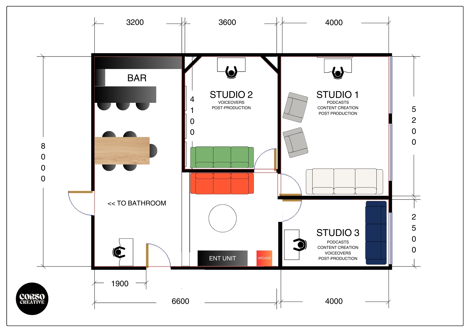 STUDIO 3 is a cosy, yet extremely well-appointed creative suite within our Manly Corso studio facilities. The space benefits from an abundance of natural light. This room is acoustically treated and ideal for podcasting, voice-over work, as well as post-production editing & content creation.