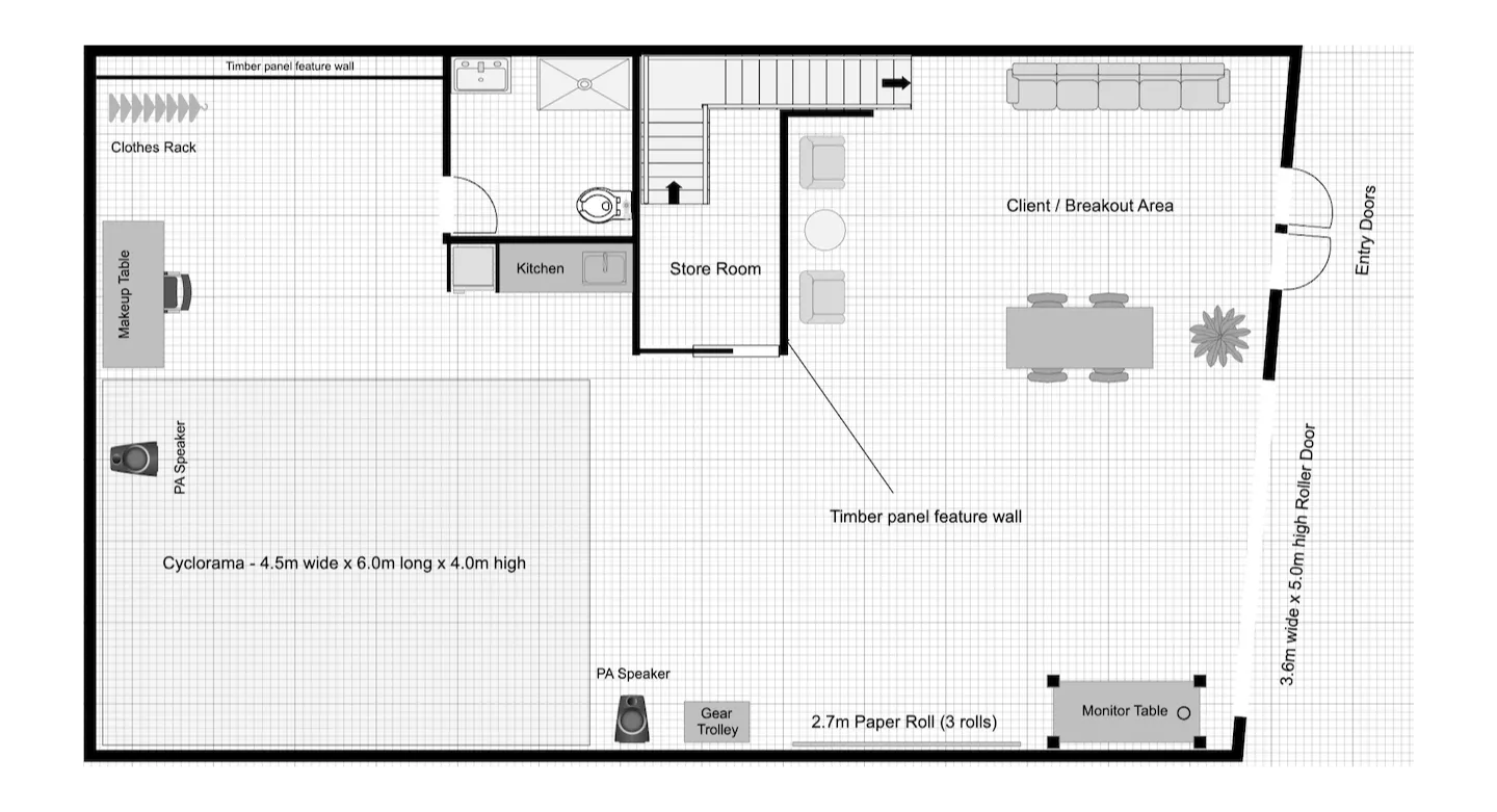 Light controllable space with large open space and flexible shooting configurations. We have plenty of inclusions and can also provide lots of hire options including lighting, extra stands, grip gear and camera systems.