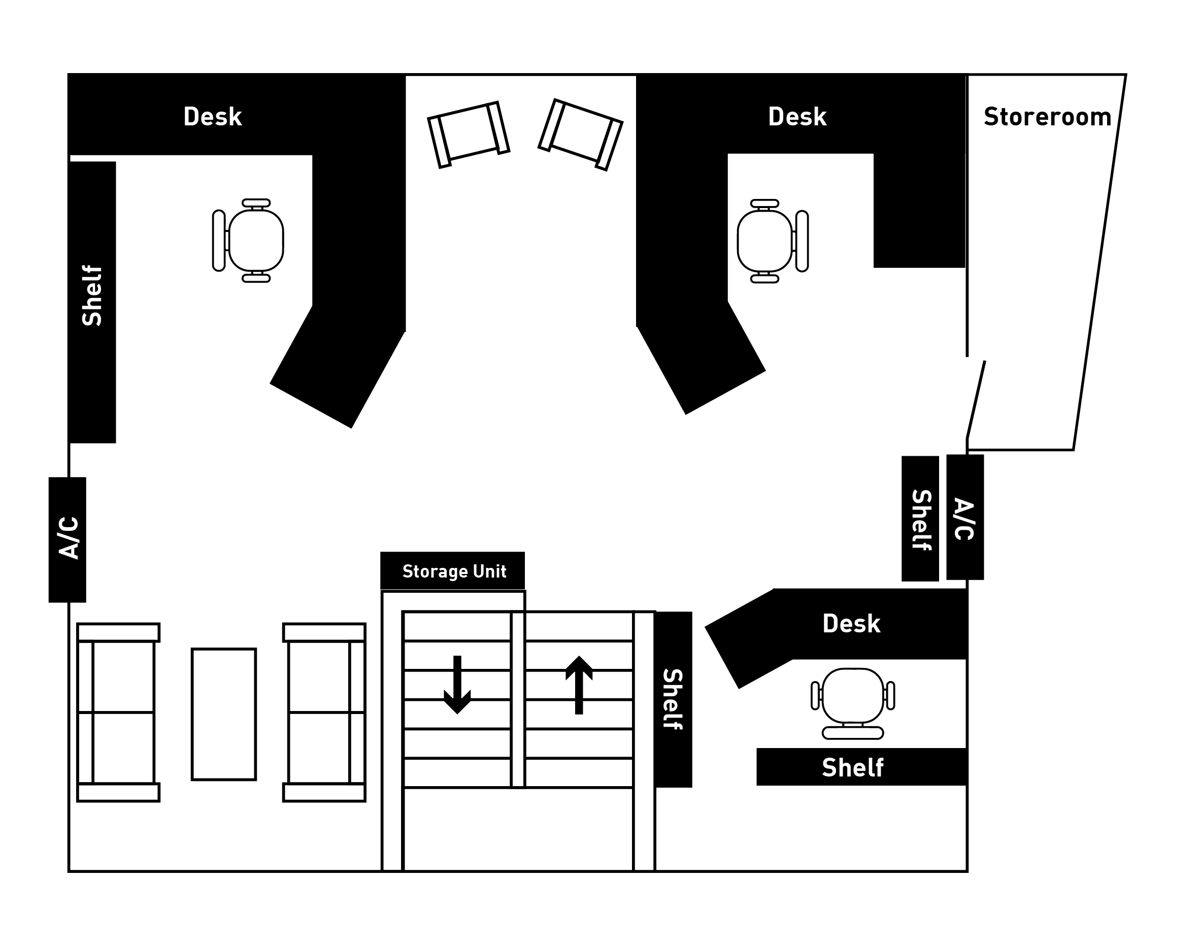 A light filled fully furnished upstairs office space, with its own closed off storage area. Two split systems ensure a comfortable work environment all year round.