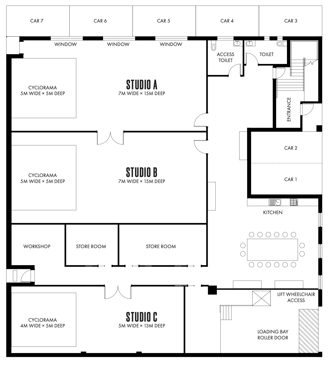 We have 3 separate spaces in which to create your vision. Studio A & B are larger at 105m2 and Studio C is 65m2. All have a cyclorama, concrete floors, are climate controlled and have a Sonos sound system. Everything to make your shoot very comfortable.