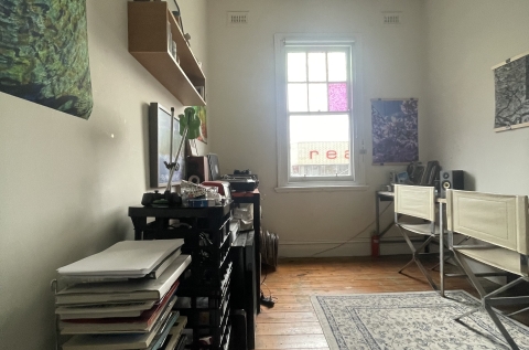 Natural light filled room with a large shared double desk. Cosy room ideal for jewellery making by the window (fan and pull out desktop by the window). Awesome space to retreat to for a creative session solo or with a friend. **Space is shared with me (John), a 23 year old designer who enjoys spinning records, illustrating, print making & altering clothing.** **Preferably looking for another young creative jeweller / designer / writer / photographer, that is kind and friendly. If you have any other inquiries and think this space is right for you, feel free to msg here or dm on instagram @john_kinsman :)