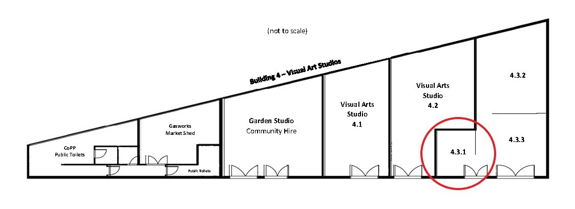 The studio is located in the beautiful creative precinct of Gasworks Arts Park. Here you will be a part of a strong community of artists and creatives coming together to celebrate and experience the transformative effects of art, nature, heritage, and culture.