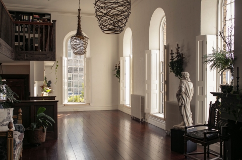 The light-filled first floor space is open plan with stained dark timber floors and painted brick walls. Long, long walls. Versatile and adaptable, while being full of charm and character. There aren't many like this left! The space has refurbished original features including painted barn/stable doors, high ceilings and arched windows. The west-facing windows overlooking Smith St, provide an abundance of natural light, while floor-to-ceiling sheer curtains give privacy from the adjacent space. The space can be used as a blank canvas for eCommerce and product shoots, or styled as a warm and charming living room for lifestyle shoots. The studio can also be used as an event space. And the walls are open to being filled with your art – we welcome long-term exhibitions. Access via Little Oxford St. Includes one car park spot onsite.