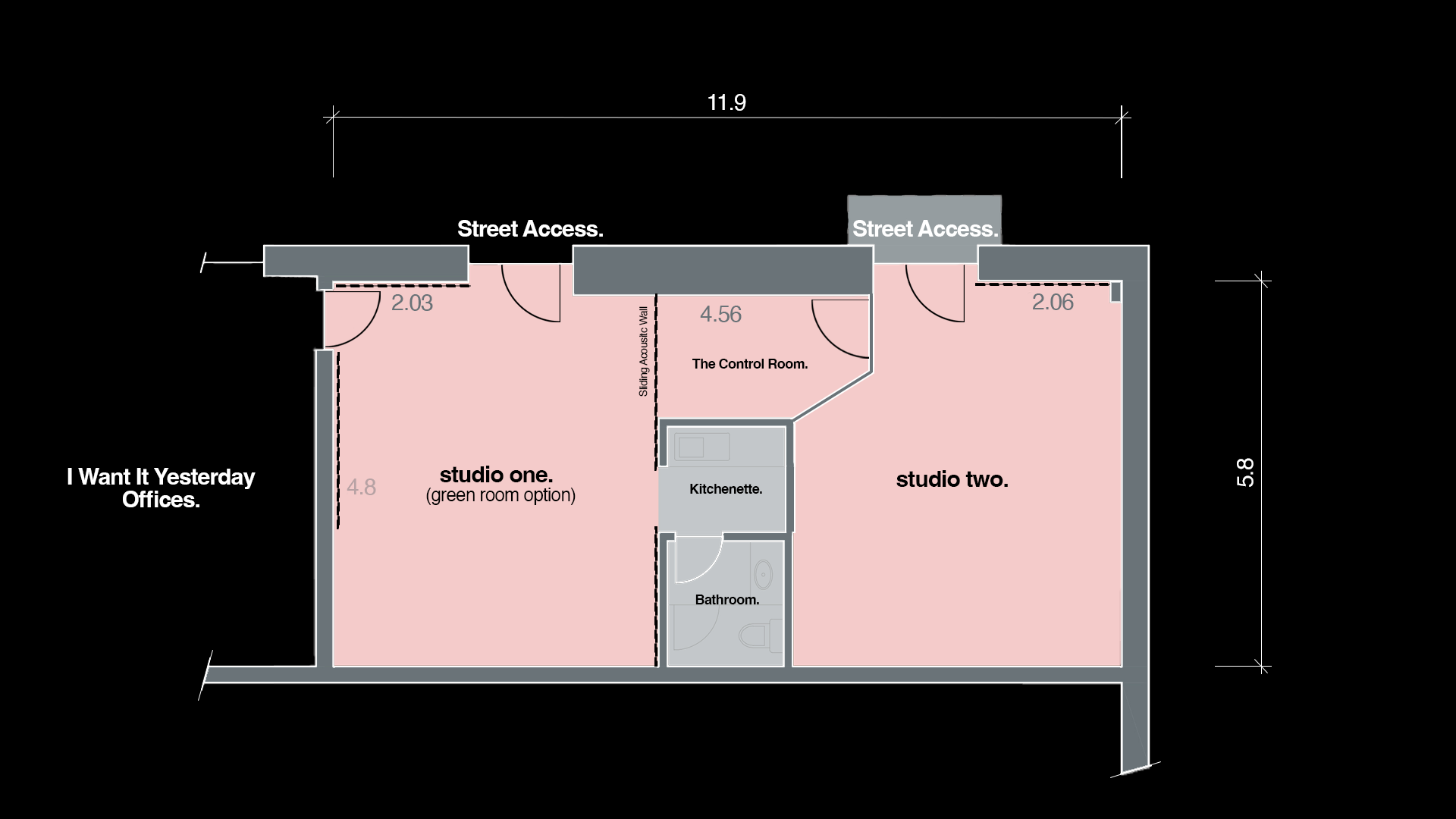 Street parking available outside of Studios